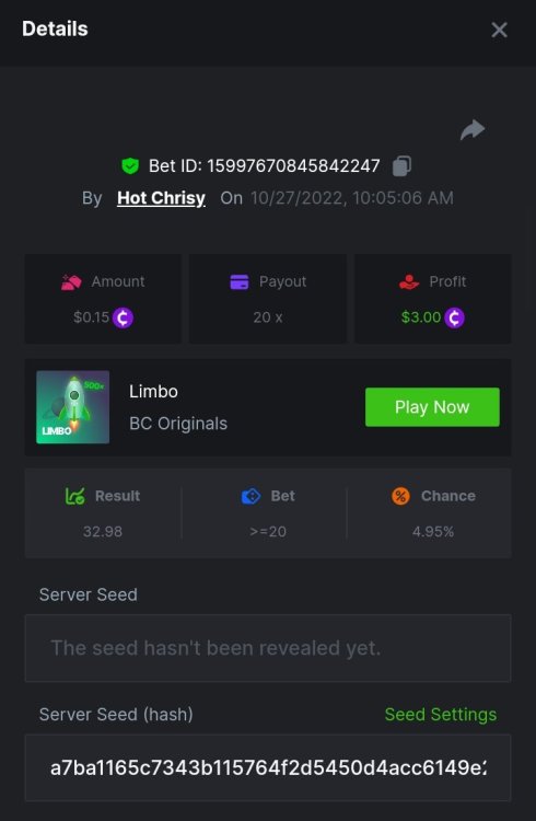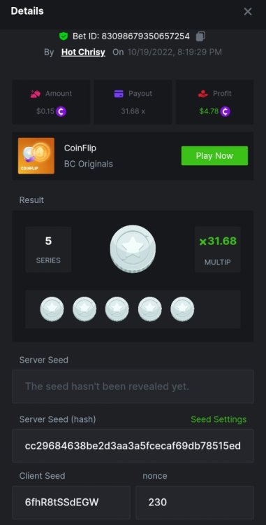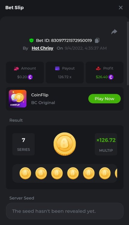Bounty: https://bc.game/#/sd/10UDBYYTH55TLF I put in $.15bcd not .$14 guess it's market fluctuations. https://bc.game/#/sd/10UDBKHRACQMTV