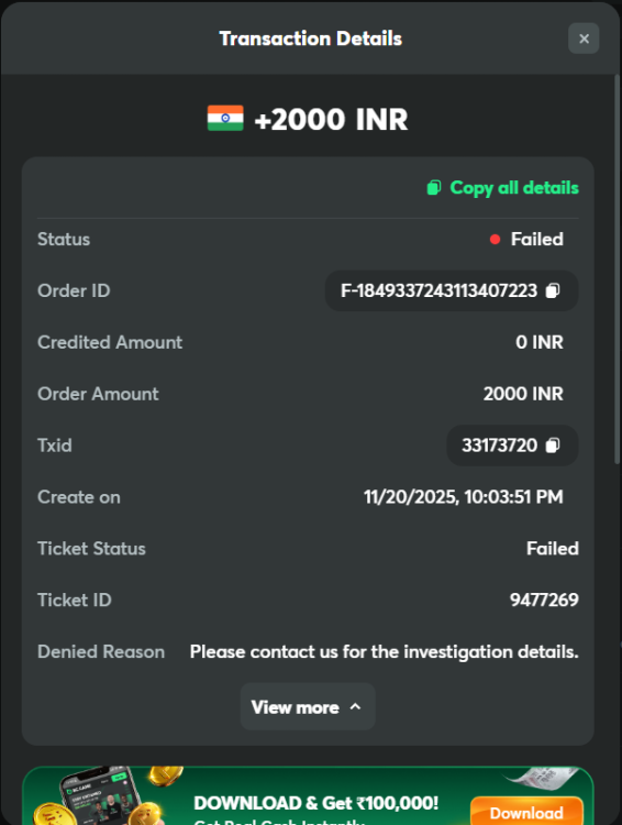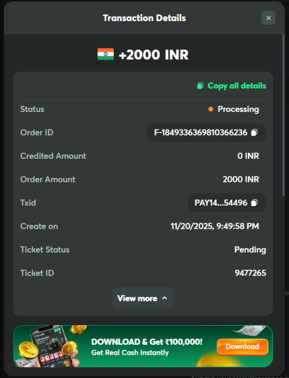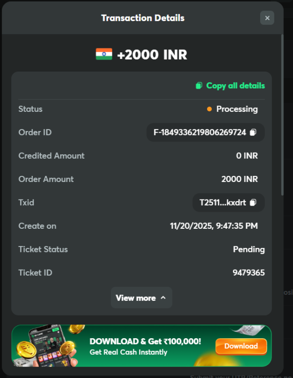 Also, I made three deposits on 20.11.2025 (F-1849337243113407223, F-1849336369810366236 & F-1849336219806269724), but the amount has not been added to the wallet yet. I have been requesting customer service to look into it and do the needful where as no positive feedback from them.