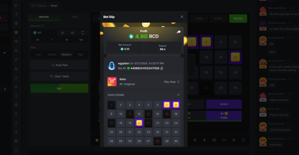 2. crash 10x https://bc.game/#/sd/11VJ92QI9RNKZN classic dice https://bc.game/#/sd/11VJ9DW859Q5JV plinko 76x https://bc.game/#/sd/11VJAHF58LPXCV twist 15.50x https://bc.game/#/sd/11VJBPT0FZ45NF keno 50x ( 7-30-8 ) https://bc.game/#/sd/11VJDP173C5RFJ Roulette 36x https://bc.game/#/sd/11VJFRBFSZG42J Baccarat 9x https://bc.game/#/sd/11VJGD8R76A5JV wheel 29x https://bc.game/#/sd/11VQM36PRLW9HN vrify